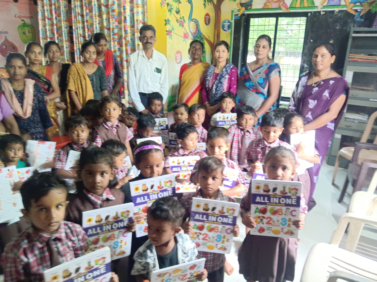 Today, on 19/08/2025, Gram Panchayat Sawanga distributed the book "MY FIRST ALL IN ONE BOARD BOOK" to the children of Anganwadi the distribution was done by Sarpanch Mrs. Bhagyashree Nilesh Bhajikhaye, Member Mrs. Pratibhatai Avinashji Pandey, Gram Panchayat Officer Mr. Pankaj Chaple Saheb, Anganwadi Sawanga Helpers Mrs. Balitai Kulmate and Mrs. Shubhangitai Uike as well as the parents.